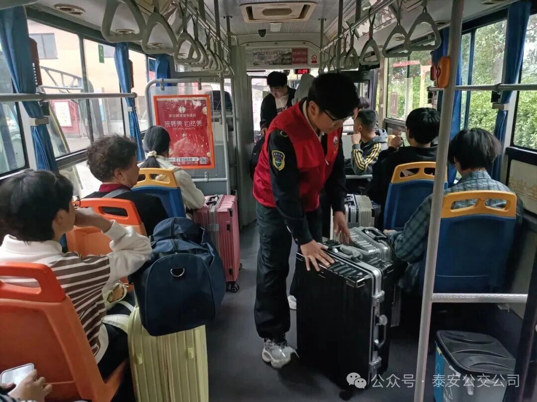 針對泰城東部高校節(jié)假日前后“集中放假、集中返校”的出行規(guī)律,根據(jù)以往經(jīng)驗掌握返校學(xué)生客流量、高峰時段等需求信息。第三分公司提前部署,科學(xué)調(diào)配運力,安排好駕駛員、公交志愿者,以及車輛儲備、實時調(diào)度工作。在泰山火車站公交樞紐站的直通車服務(wù)點,醒目的“火車站—山東服裝學(xué)院—泰山職業(yè)學(xué)院—泰山科技學(xué)院”線路標識牌擺放在車前,讓剛下火車的學(xué)子們一眼就能找到乘車點。公交志愿者們主動上前,一邊引導(dǎo)學(xué)生有序排隊候車,一邊協(xié)助將行李箱規(guī)范擺放在車廂內(nèi)。“放假回家時坐直通車到泰山火車站,現(xiàn)在返校又能從泰山火車站直達校門口,不用拎著大包小包轉(zhuǎn)車換乘,太省心了!”來自泰山科技學(xué)院的一名學(xué)生笑著說道,話語里滿是對直通車服務(wù)的贊許。
